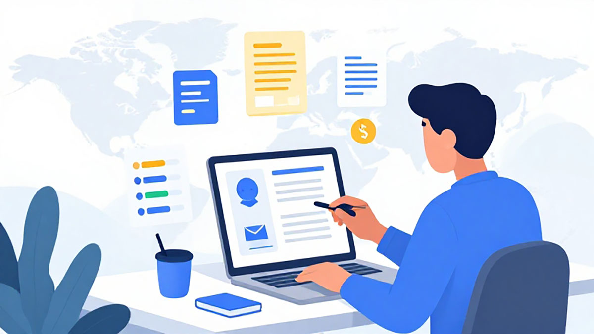 Untuk mendapatkan klien online, profil profesional adalah kunci. Gunakan platform freelance seperti Upwork, Fiverr, atau situs lokal untuk menampilkan portofolio dan testimoni. Sertakan detail kemampuan bahasa, jenis dokumen yang dikuasai, dan pengalaman yang relevan. Profil yang lengkap dan rapi meningkatkan kepercayaan calon klien. Jangan lupa untuk menambahkan foto profesional dan deskripsi layanan yang jelas serta menarik.